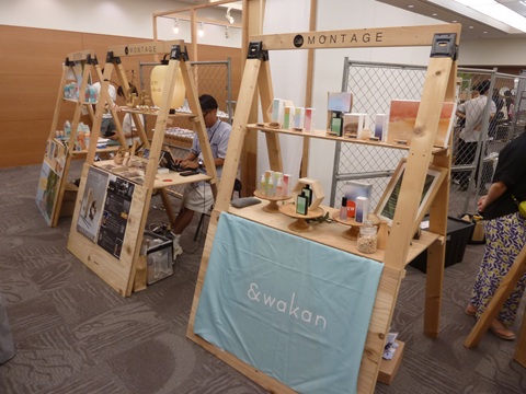 モンタージュ展はインテリア、ガーデン、アウトドア、ライフスタイルなどの雑貨が一堂に会して来場者の五感を刺激する。木の温もりを感じる什器、緑が映えるディスプレイなど、各ブースがそれぞれの世界観を演出している。