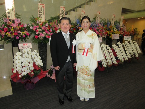 笑顔で多くの招待客の対応を行っていた中村社長夫妻。