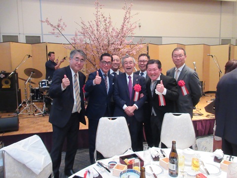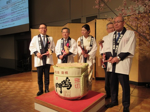 式典では鏡開きも行われ祝い酒がふるまわれた。多くの業界関係者が集いその旧交を温めた。