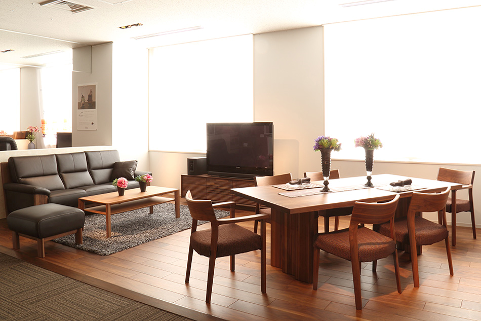 ①家具メーカーのショールームだから、部屋づくりのヒントが詰まっている。