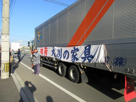 新春展恒例の初荷に出発式